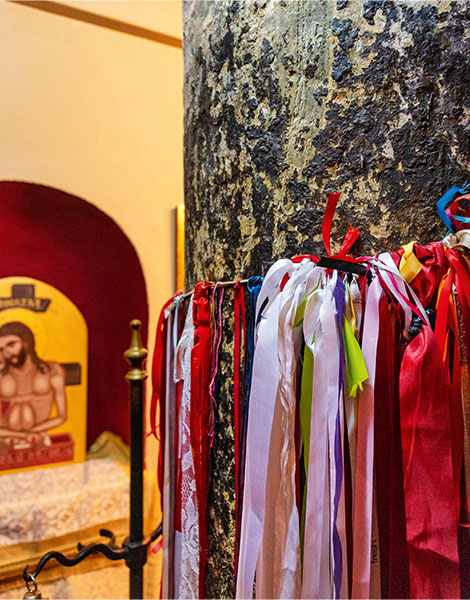 The old Athenians believed that John the Baptist could cure anyone from sickness. According to the Greek historian and academic Dimitrios Kampouroglou, Saint John “in his last days erected a column, and at its foundation he tied all the illnesses with silks of various colors, and he buried them deep there and on top of them he placed a column and said: ‘When I am about to die, whoever falls ill should come and tie three knots of silk on the column, in whatever color his illness is, and say three times: “My Saint John, I bind my illness and may your grace untie it,” and they will immediately be cured.’ This is connected to beliefs that probably developed in the Middle Ages, which attributed to columns some supernatural powers, Pallis explains.