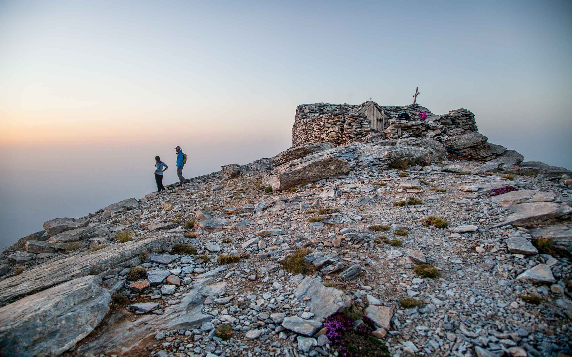 Fragments of the ancient sanctuary remain scattered around the summit. A foundation of massive stone blocks and fragments of roof tiles lie just beside a small Orthodox chapel, suggesting a temple once stood here, layered beneath centuries of worship. A surviving archaic altar completes the picture of sacred continuity – from Bronze Age ritual to Christian devotion – making this a rare site where belief has outlived stone.