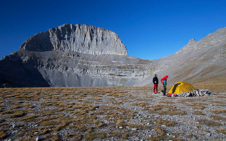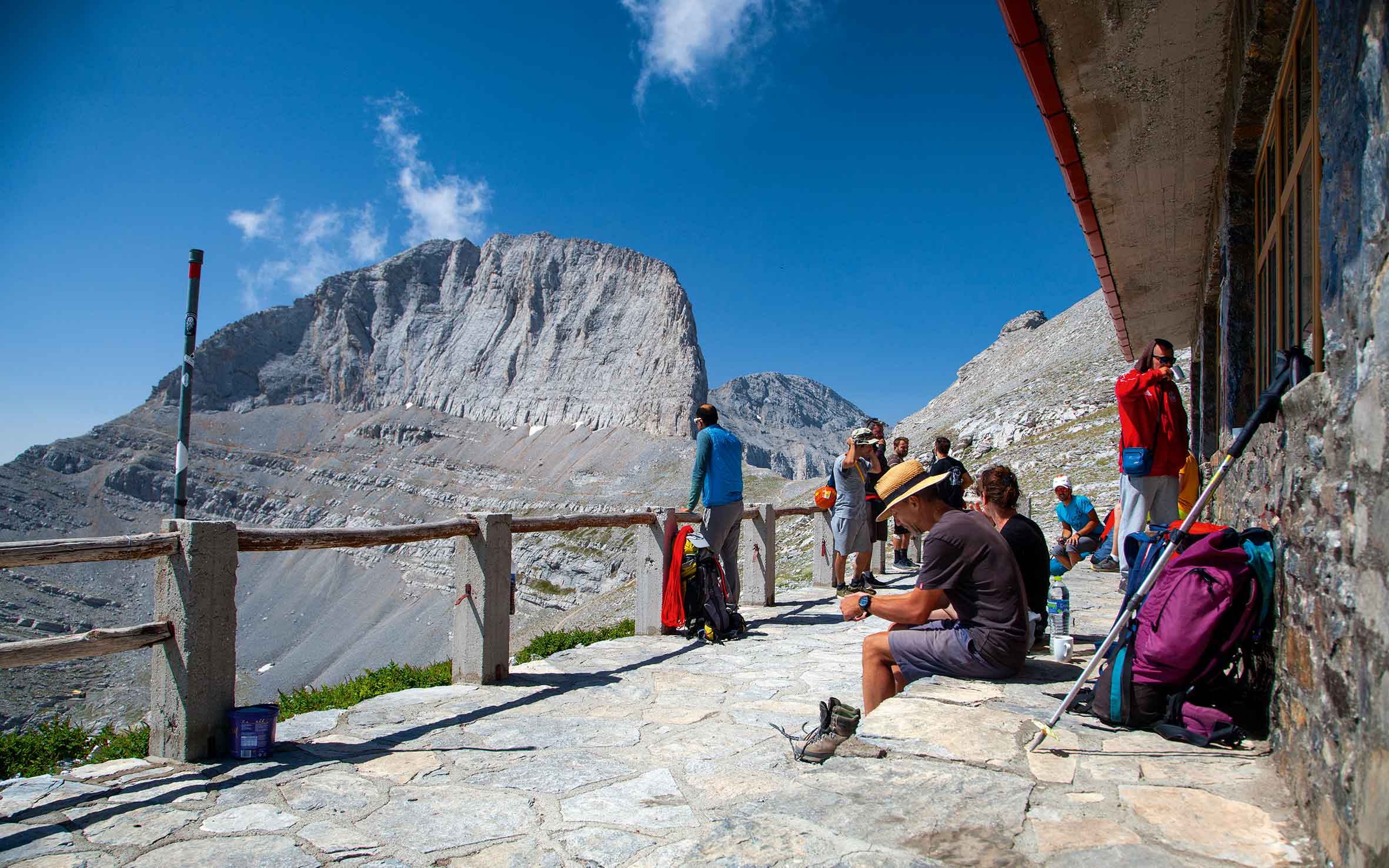 The imposing Stefani Peak on Mount Olympus, as seen from Giosos Apostolidis Refuge.