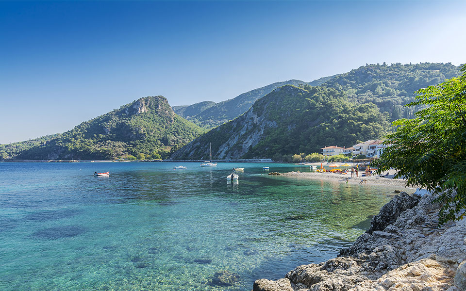 Further north, Avlakia sits quietly between the busier beaches of Tsabou and Tsamadou. With its white-pebble shoreline and forested mountain backdrop, it’s ideal for snorkeling, fishing, or reading in a hammock. Stop at the Avlakia Hotel café (Tel. (+30) 22730.942.30) in front of the little chapel of Saint Nicholas, or sample gourmet seafood just a few steps away at Asimopetra (Tel. (+30) 698.236.8683).