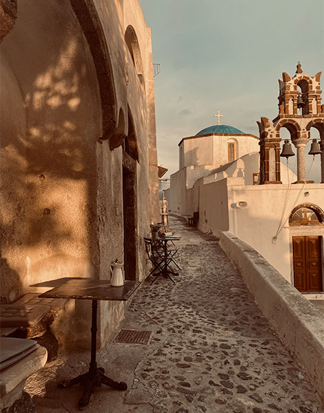 For a timeless experience, visit Aktaion restaurant in Firostefani, just beside the church of Aghios Gerasimos. With its vintage interior and local recipes, it feels like stepping into another era.