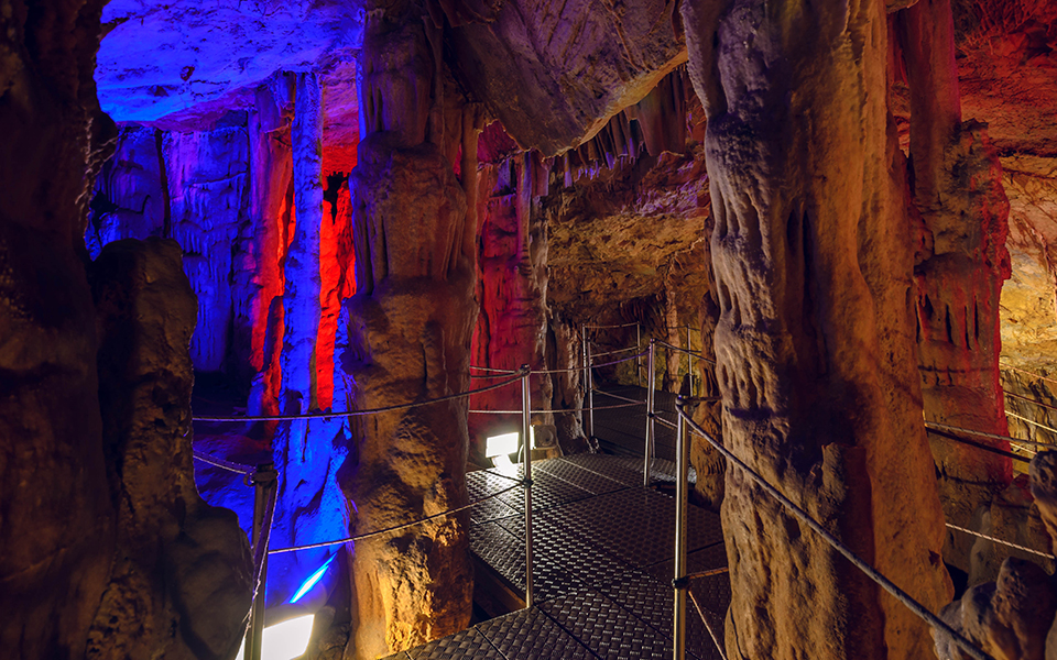 It’s the end of summer and visitors are still arriving from all over the world. Sfendoni, the largest accessible cave on Crete and one of the oldest in Greece, is located about a kilometer northeast of the mountainous village of Zoniana, in central Crete, and 43 kilometers from the town of Iraklio, at an altitude of 650 meters. It is part of the Psiloritis Natural Park and is protected by UNESCO. It is teeming with stalactites and stalagmites, petrified wave formations, and impressive colors that alternate from room to room.