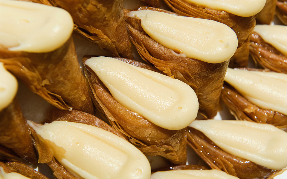 Before long he’d added whipped cream and puddings to his products, and when one day an employee filled a puff pastry cone with whipped cream, he had a eureka moment. Why not make a cone of filo and squeeze in some custard? Thus was born the famous Trigono – 10,000 were sold in a single Sunday, and Yiannis forgot about sleep.