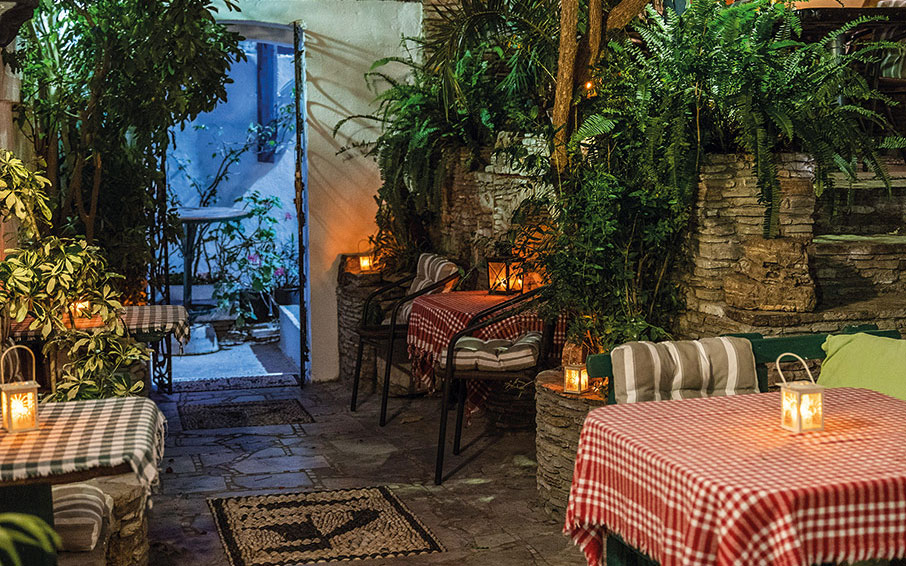 This wealth of neoclassicism, with a hint of Symiot spirit, coexists with traditional elements such as pebble mosaic flooring, stone arches and white-washed squares with enormous plane trees. What’s more, it’s traditional Greek music that floats out over the steps from the open windows of these houses.