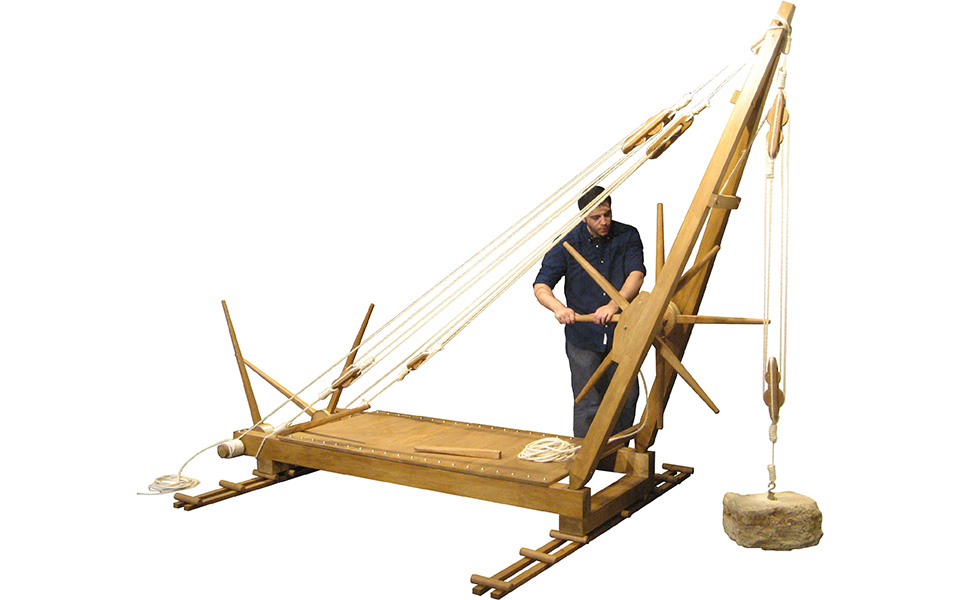 The twin-mast lifting machine used to build the Parthenon – Kotsanas Museum.