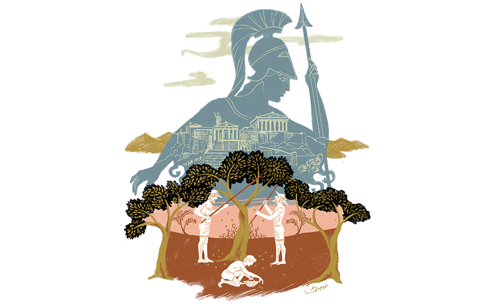On a civic or state level, every city had their own divine patron that protected the city-state and encouraged its people. In 5th-century BC Athens, for example, Athena was the great patroness. In Sparta, it was Artemis and Apollo; in Thebes, Dionysus and Apollo; in Argos and Samos, Hera. For the Athenians, Athena supported and represented (through her own attributes) their various interests, ambitions and industries. As the warrior goddess, she emboldened the city-state’s military and imperial aspirations. As the goddess of wisdom, she inspired the city’s sage philosophers and other thinkers. Through her vital gift of the olive tree, meanwhile, she promoted Attic agriculture by encouraging farmers to cultivate a remarkably versatile crop. The olive tree provided not only nourishing fruit and calorie-rich oil but also fuel for lamps and wood for winter fires. Olive oil, in particular, was indispensable: athletes and others used it for personal hygiene; physicians for healing remedies; and early pharmacists and perfumers for cosmetics, unguents, and aromatic scents. It was also a key commodity for trade, and it played an important role in religious rituals: in the anointment of kings, of gods in mythology, and of the dead before burial.
