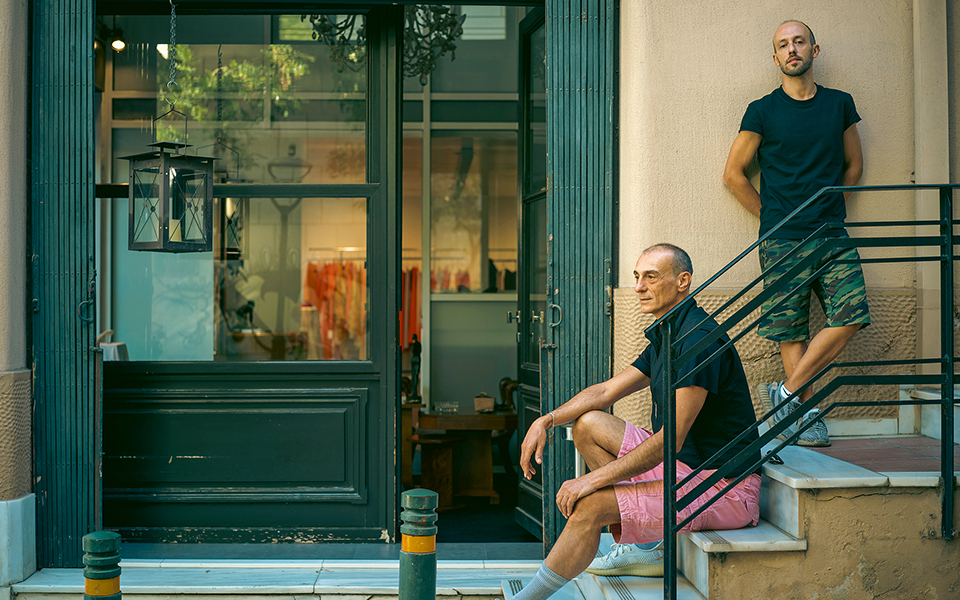 A fashion house window display in the quiet, family area initially surprised the locals. “Those first days, people literally bumped their heads against the glass, trying to peek inside,” Christos recalls, smiling. “But soon, many became our clients – and even more, our friends.” Sitting on the pedestrian steps outside, he adds, “We left Kolonaki just as it was changing, and here, we found exactly what we were looking for.”