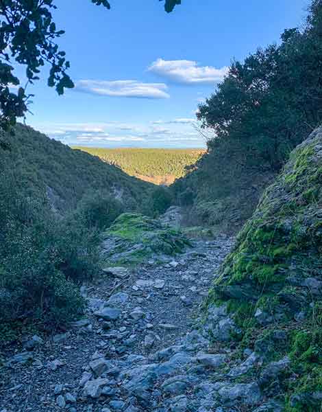 Feeling revitalized and hopeful for no particular reason, I head to the entrance of the path to Karakoli. It winds through a tunnel of low trees and dense Mediterranean vegetation, revealing a secret after several hundred meters: a wonderful, wide calderimi (traditional cobblestone path) that soon leads to an ancient stone bridge in a completely unexpected location! My mind is racing to come up with an explanation: this had to be the only road connecting the plain to Aghios Dimitrios and, eventually, to the villages of Elassona. It would have been the simplest and quickest route at this elevation. Armies, conquerors, merchants, pack animals, and even schoolchildren must have passed through here.