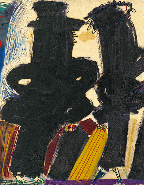 Alekos Fassianos, Two Figures 1964, oil on canvas. Techni donation to Teloglion Foundation of Art A.U.Th © Teloglion collections