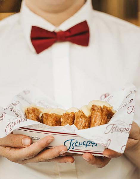 Locals in Thessaloniki often start their day with a warm slice of sweet or savory bougatsa. This beloved breakfast staple, made of buttery layers of phyllo filled with either custard, cheese, minced meat or spinach, has found a new home at Tzeneral, a recently opened pâtisserie in the heart of the city. Blending retro aesthetics with authentic flavors, Tzeneral reintroduces Thessaloniki’s pastry star in the most delicious way. Each bougatsa is crafted daily with homemade filo dough, filled with classic choices and baked to golden perfection. Try the custard-filled or the mixed spinach-and-cheese version, ideally paired with the homemade chocolate milk – thick, velvety and nostalgically comforting. Pantelis Tsompanis