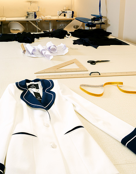 In the heart of the city, Eleanna Tabouri introduces Nevro, a brand devoted to precision, craftsmanship and timeless tailoring. Her recently opened atelier and showroom present hand-sewn blazers, jackets and outerwear pieces of refined aesthetics, each garment meticulously crafted one stitch at a time. At the core of the collection lies what Tabouri calls the “blazer DNA,” a design identity that runs through every piece, even unexpected ones such as dresses with lapels and tailored collars. The name “Nevro” stems from the idea of the blazer as the neuron of a wardrobe – a vital point of connection, the centerpiece that ties everything together. Having studied Tourism Management in Milan, Tabouri credits the city for sharpening her aesthetic sensibility and shaping her creative perspective. Returning to Greece, she founded Nevro on principles of sustainability and slow fashion: limited stock, small runs and many pieces made to order. “Women in Thessaloniki,” she notes, “wear the blazer as it deserves to be worn, with strength, ease and confidence.” Nena Dimitriou