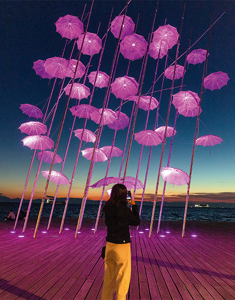 If the famous work “Umbrellas” by sculptor George Zongolopoulos is on your list of Thessaloniki must-sees, you might be disappointed to find it missing – for now. The 13-meter-high, stainless steel sculpture, one of the city’s most iconic and most photographed landmarks, has been taken to Athens for restoration. Originally installed on the New Waterfront in 1997, when Thessaloniki was the European Capital of Culture, the work has endured harsh winds as well as the weight of countless love locks that couples used to hang from its rods – a romantic habit that had to be stopped to preserve the sculpture.