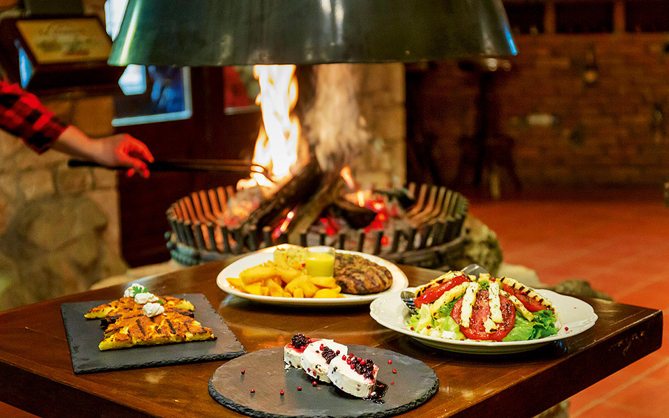 At Dolopes (Karitsa, Tel. (+30) 24410.949.93), at 1,180 meters with mountain views, you’ll enjoy traditional cuisine featuring many ingredients produced by the owners themselves. Try the goat cheese feta, the plastos (cornmeal pie with greens), the wild greens, and the sausages.