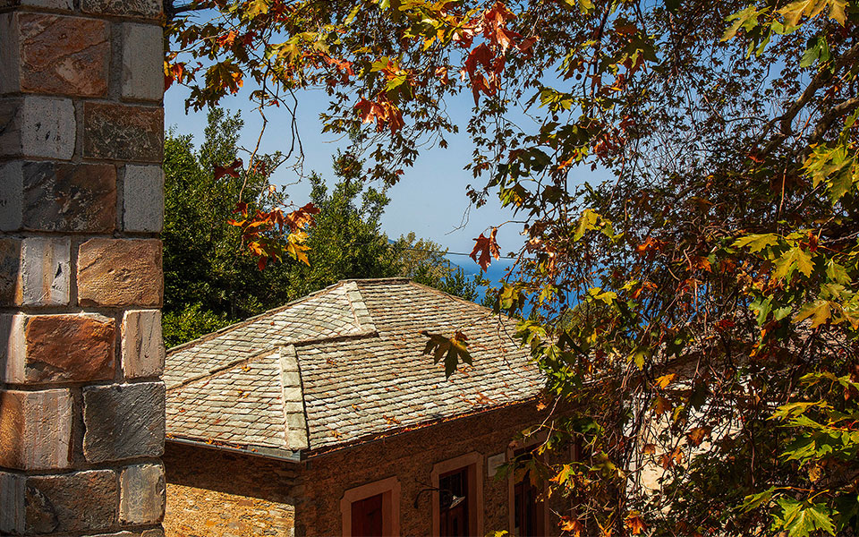 In Tsagarada, Pilio’s traditional stone-roofed architecture prevails.