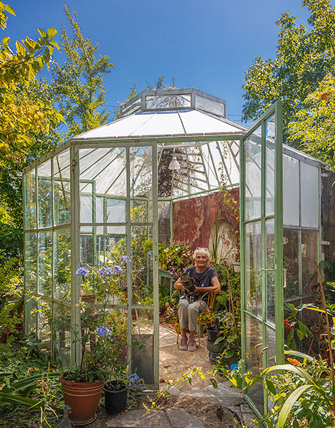 Doris Schlepper in her garden with rare plants and trees from around the world.