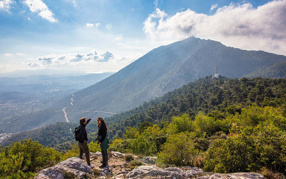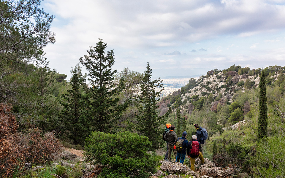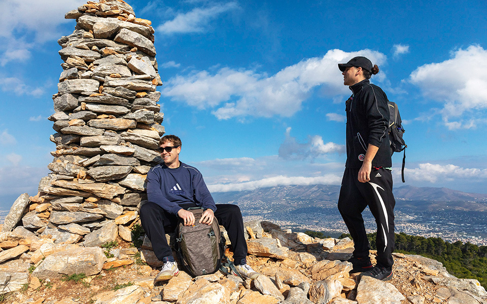 Rising to 1,026 meters, Ymittos is the third-highest mountain in the Attica Basin. To the west lies the dense sprawl of Athens; to the east, open plains stretching toward the airport. To the north, the outlines of Mount Penteli and Mount Parnitha are clearly visible. “On a clear day,” Giorgos says, “you can see as far as the snow-covered peaks of Mount Parnassus.”