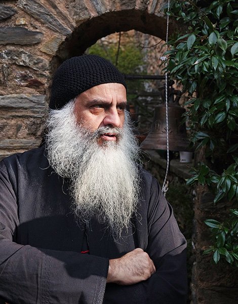 Two young motorcyclists roar past, accelerating before vanishing behind a thicket of pines. Their shouts echo briefly, the drone of exhaust pipes cutting through the winter stillness. We are on Mount Ymittos, at an elevation of 525 meters, about to knock on the door of the Asteriou Monastery, one of nine monastic sites that, as Father Alexios later explains, spiritually “encircle the kleinon asty,” the illustrious city of Athens. Father Alexios arrived here in 2013, when the monastery was abandoned and bats had taken up residence inside. Today, he and two other monks conduct daily services. “Ymittos is the Mount Athos of Athens,” he says, inviting us inside.