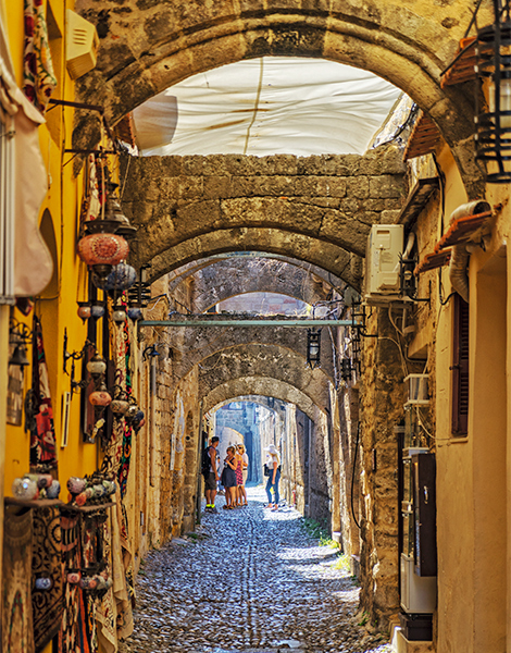 Like an Eastern bazaar, Sokratous Street has always been a lively shopping area. It terminates near the Suleymaniye Mosque, the most significant surviving Ottoman-era monument in Rhodes.