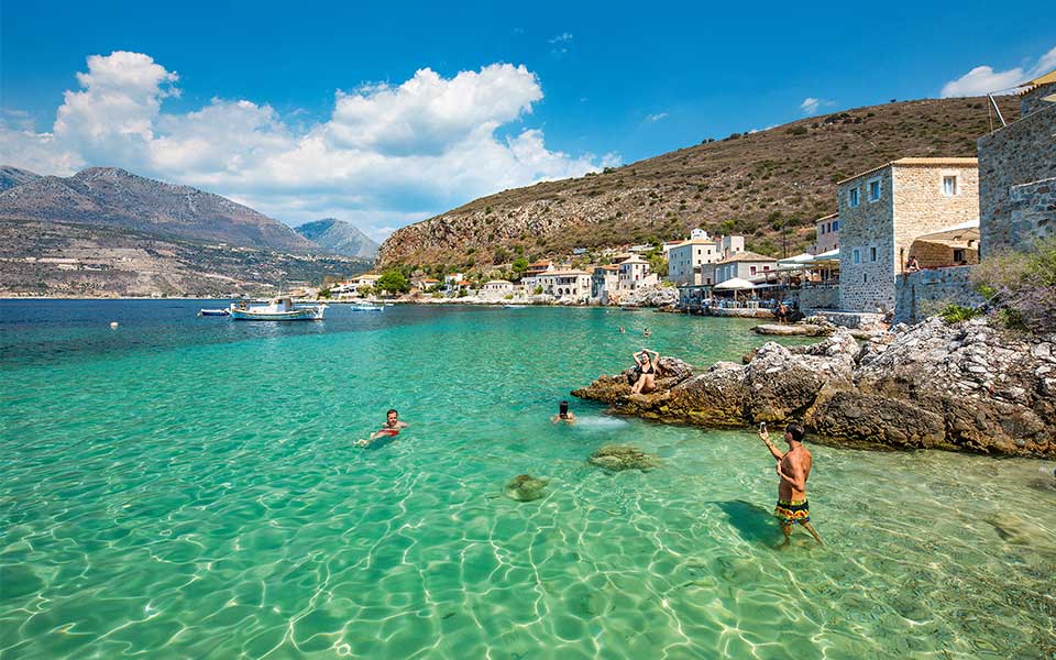 The beaches of Mani have their “returnees,” who visit every year to find things as they left them. You will find them at Vathy with its coarse sand and Caretta caretta loggerhead turtles, and at the family-friendly Skoutari with its shallow waters and the Byzantine chapel of Aghia Varvara on the water’s edge.