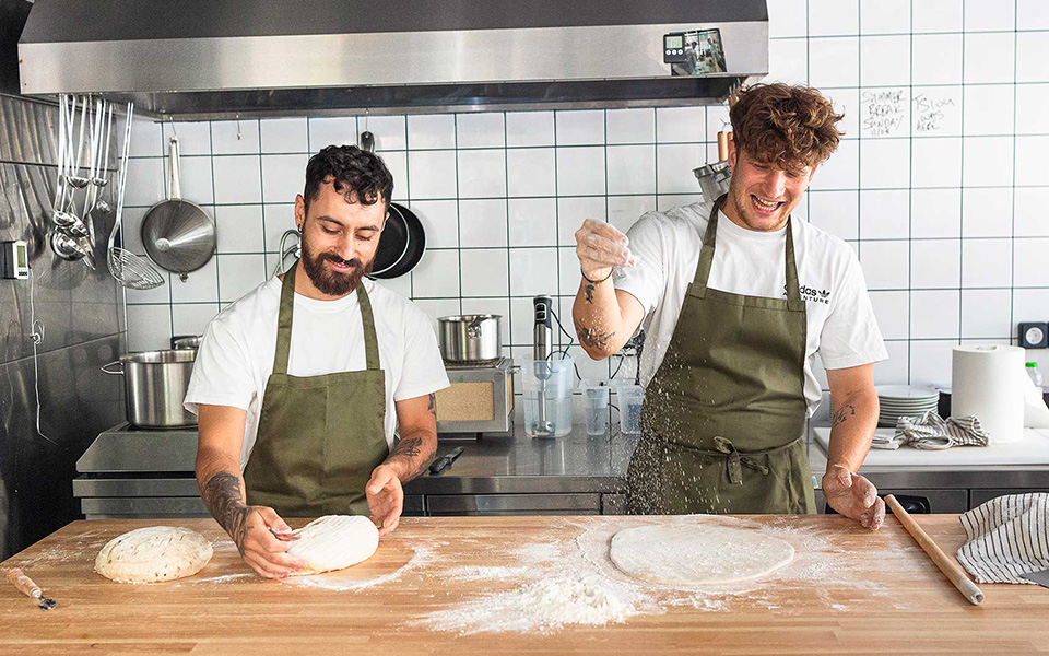 Named after the term used by the Vlachs, the once-nomadic people of northern Greece, for “fermentation,” Alouatou opened in July. Founded by four friends – Spyros and Giannis Gavathas, Stefanos Kouris and Theodosis Mantesis – its focus is on bread and savory pies made with honest ingredients. Every morning, the team rolls out filo dough by hand and bakes trays of traditional savory pies – minced meat, spinach and cheese, graviera cheese, Chania-style boureki, and macaroni pie – using family recipes passed down from their grandmothers.