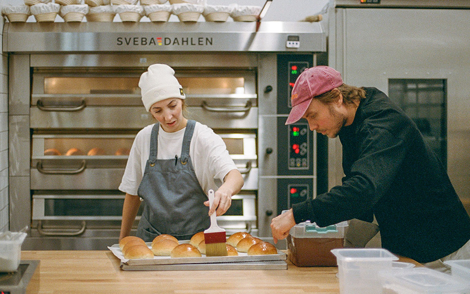 The open kitchen lets you watch the team pulling warm loaves and braided cardamom buns from the oven, along with fluffy semla, the beloved sweet rolls of the North, filled generously with whipped cream. Simple sandwiches are assembled with care: a sourdough bun with Comté cheese and whipped butter, or a classic Swedish skagen, topped with shrimp, lemon, mayonnaise, dill and pickled onion.